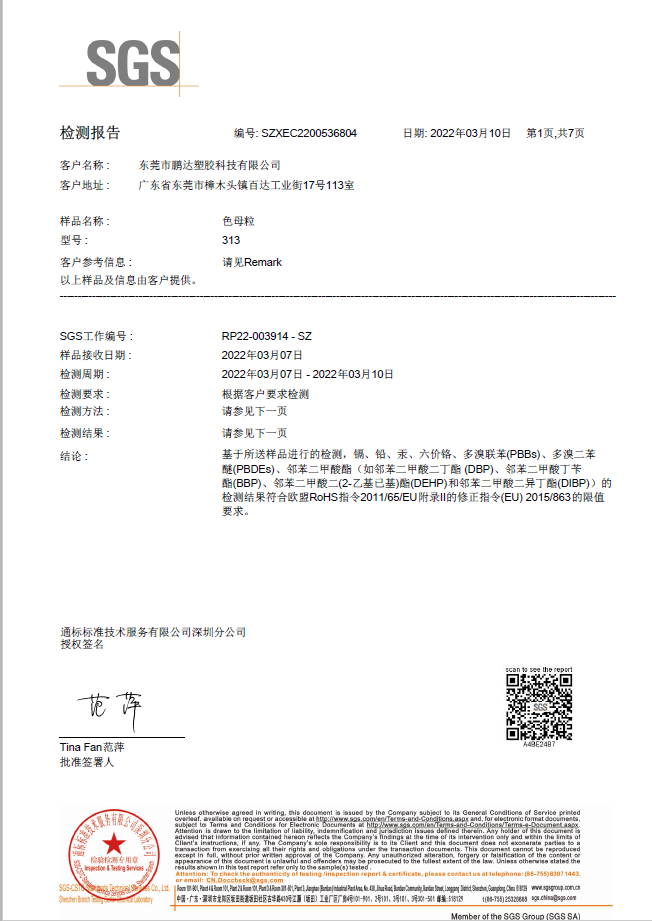 和鵬達(dá)塑膠科技有限公司合作很長一段時(shí)間了,他們的產(chǎn)品質(zhì)量好,服務(wù)到位,且原材料都通過SGS測試符合歐盟REACH,PaHS、ROHS及無鹵指令,備有美國FDA級(jí)食品接觸規(guī)格物料,和他們合作完全沒有后顧之憂!
